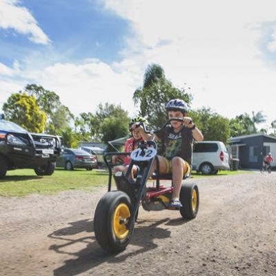 Bookings can be made at Reception and go-karts are available between 10am and 3:30pm. Parents will need to accompany children to Reception to sign the consent form. All riders and passengers must wear a helmet and appropriate enclosed footwear.
